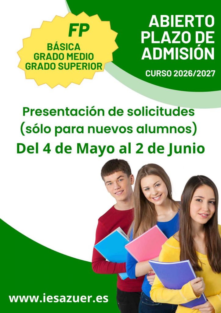 ABIERTO PLAZO DE ADMISIÓN CURSO 2026- 2027 A CICLOS FORMATIVOS