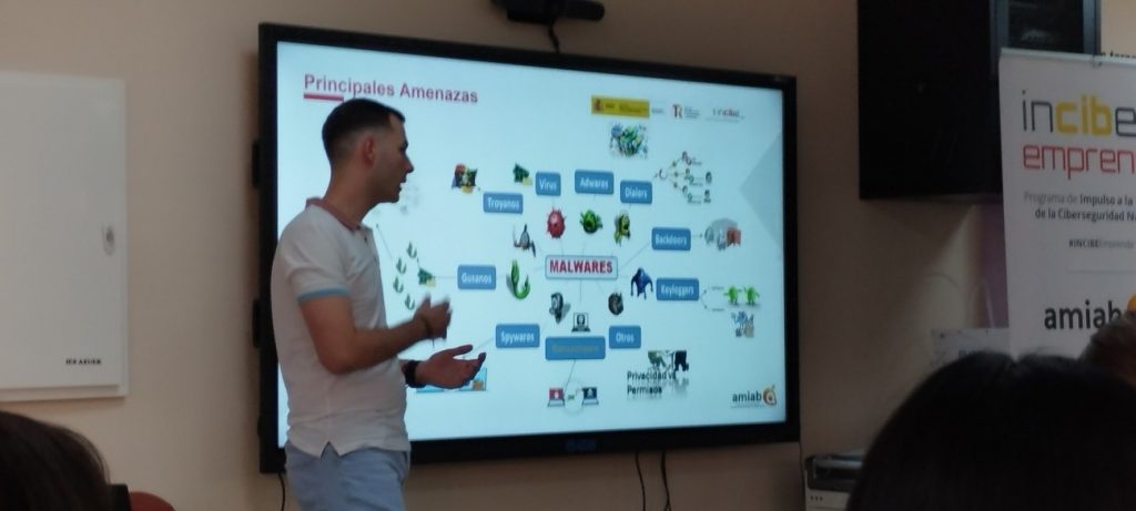 La sesión comenzó con una explicación clara sobre qué es la ciberseguridad: el conjunto de medidas técnicas, organizativas y humanas destinadas a proteger sistemas, redes y datos frente a accesos no autorizados, ataques o vulneraciones. A partir de ahí, Javier Andújar pasó a desgranar los distintos tipos de malware más comunes, explicando su funcionamiento y riesgos: