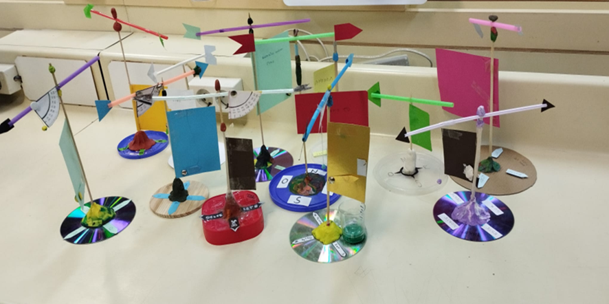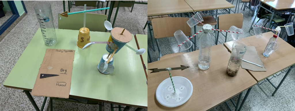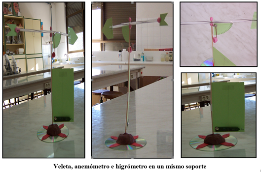 Asimismo, se ha trabajado el anemómetro, destinado a medir la velocidad del viento, y la veleta, que indica la dirección del mismo, relacionando los distintos tipos de vientos con las condiciones meteorológicas habituales en España. Todos los dispositivos han sido construidos de forma artesanal y posteriormente montados sobre un mismo soporte, dando lugar a miniestaciones meteorológicas portátiles.