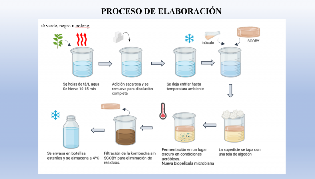 En su exposición, Marina explicó qué es la kombucha, una bebida fermentada a base de té endulzado, originaria de Asia, cuya introducción en Europa se ha consolidado en las últimas décadas. Destacó cómo su consumo ha aumentado notablemente en la actualidad debido a las propiedades beneficiosas que se le atribuyen, relacionadas con su contenido en microorganismos y compuestos bioactivos generados durante la fermentación.