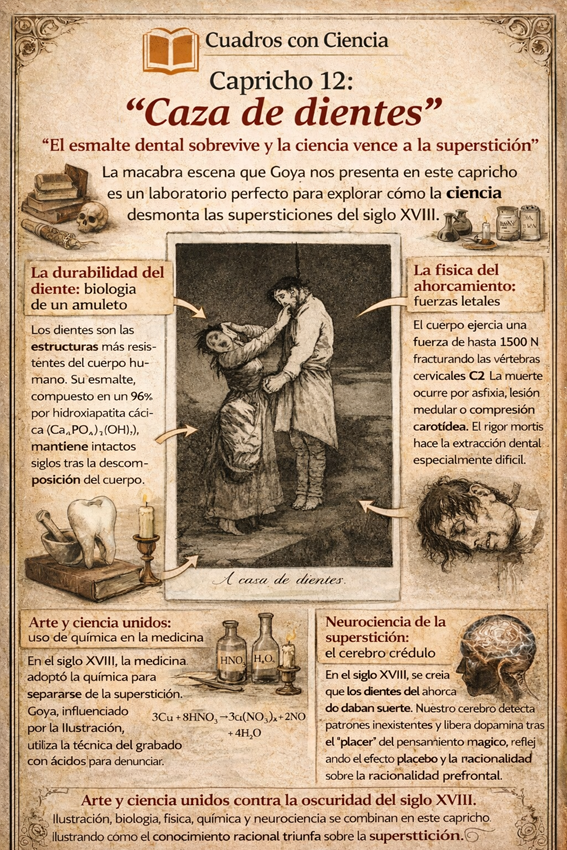Nuestro compañero y docente del centro José Luis Olmo Rísquez ha sido distinguido con el Accésit en la categoría General Internacional del II Concurso «Cuadros con Ciencia» por su trabajo titulado «El esmalte dental sobrevive y la ciencia vence a la superstición». Un título que ya anuncia la esencia del trabajo: la capacidad de la ciencia para desmontar supersticiones y alumbrar realidades ocultas en los grabados de Goya.