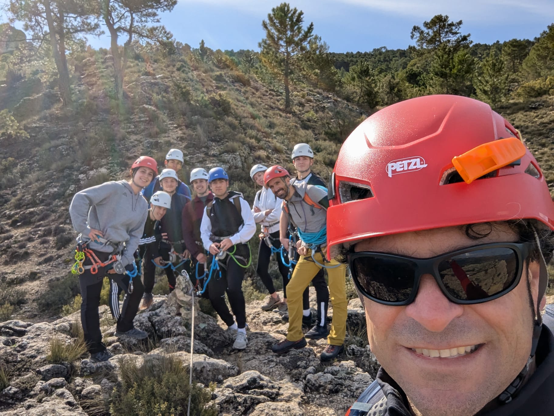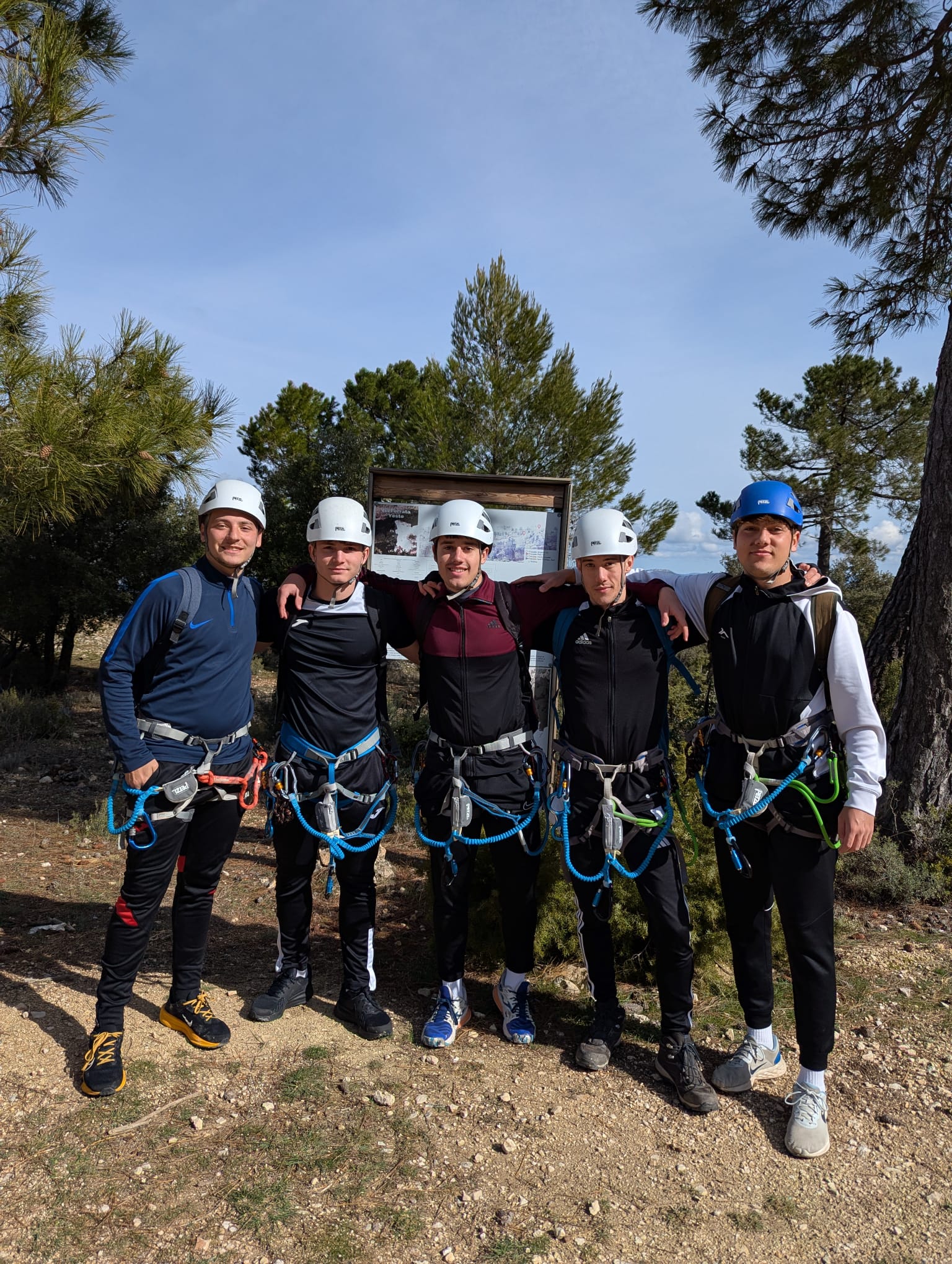 La vía ferrata presentó diferentes retos técnicos que el alumnado fue superando progresivamente, entre ellos puentes mono, una escala vertical, una pasarela metálica, así como la realización de un rápel y una tirolina de aproximadamente 55 metros. Además, durante la actividad se realizaron prácticas de autorrescate en situación real, lo que permitió al alumnado aplicar conocimientos fundamentales sobre seguridad y actuación ante posibles incidencias en este tipo de entornos.