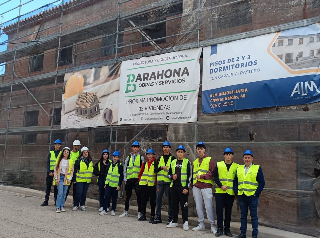El pasado 23 de octubre, los alumnos de 1° y 2° de Formación Profesional Básica en Fabricación y Montaje han visitado la obra de construcción de 33 viviendas que la empresa de construcción Barahona Obras y Servicios, s.l. (https://www.facebook.com/share/19icS32TcF/), está promoviendo en Manzanares, en la zona de San Blas.